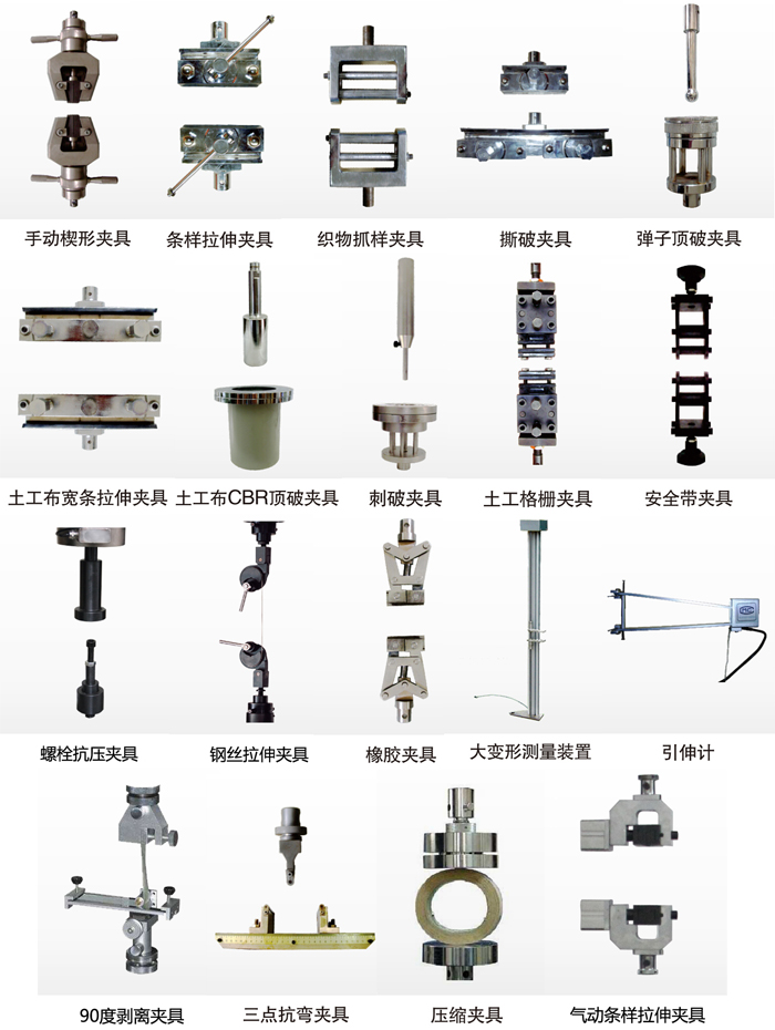 常見的拉力機夾具以及協(xié)助裝置如下:
