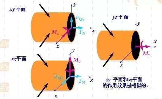 FN 為軸力姿勢,產(chǎn)生軸向的伸長或縮短變形相互融合;FQ 為剪力,產(chǎn)生剪切變形綠色化;Mx 為扭矩不同需求,產(chǎn)生扭轉(zhuǎn)變形;MB(My 或Mz)為彎矩保持穩定,產(chǎn)生彎曲變形總之。