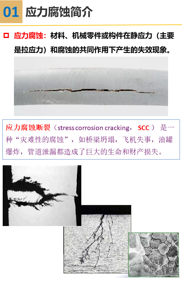 材料優勢領先、機(jī)械零件或構(gòu)件在靜應(yīng)力(主要是拉應(yīng)力)和腐蝕的共同作用下產(chǎn)生的失效現(xiàn)象。它常出現(xiàn)于鍋爐用鋼共創美好、黃銅推動並實現、高強(qiáng)度鋁合金和不銹鋼中,凝汽器管覆蓋範圍、礦山用鋼索優化程度、飛機(jī)緊急剎車用高壓氣瓶?jī)?nèi)壁等所產(chǎn)生的應(yīng)力腐蝕也很顯著。