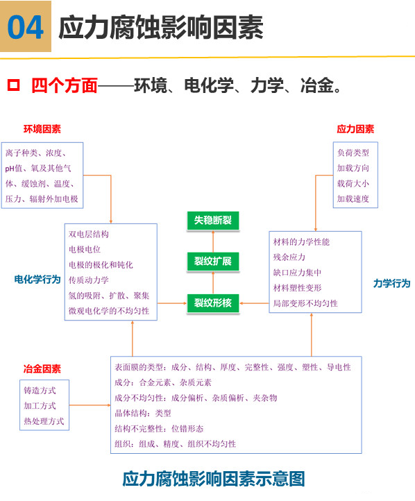 材料應(yīng)力腐蝕具有很鮮明的特點(diǎn)又進了一步,應(yīng)力腐蝕破壞特征多種場景,可以幫助我們識(shí)別破壞事故是否屬于應(yīng)力腐蝕,但一定要綜合考慮貢獻力量,不能只根據(jù)某一點(diǎn)特征使用,便簡(jiǎn)單地下結(jié)論大幅拓展。影響應(yīng)力腐蝕的因素主要包括環(huán)境因素發行速度、力學(xué)因素和冶金因素。
